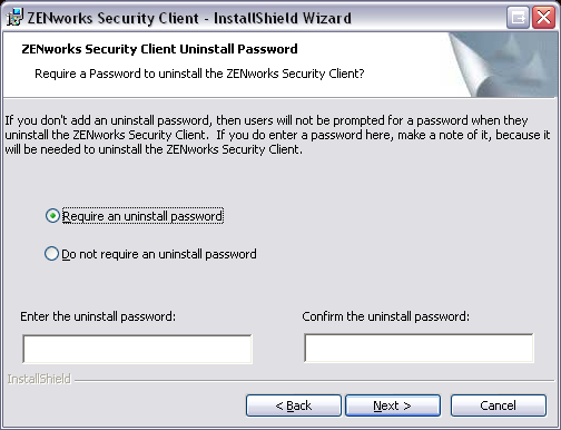 Enter an installation password. This prevents the user from uninstalling the Endpoint Security Client 3.5 through (recommended).
