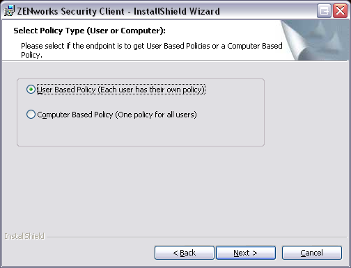 Select how policies will be received (from Distribution Service for managed clients or retrieved locally for an unmanaged configuration [see Section 10.0, ZENworks Endpoint Security Management Unmanaged Installation for unmanaged details]).