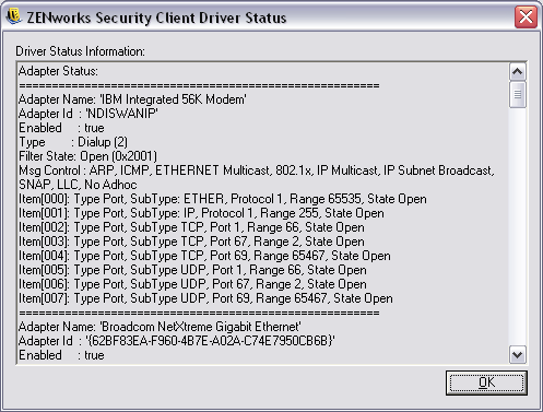 If problems occur because of the Security Client’s presence on the endpoint device, administrators can provide detailed diagnostics information packages to Novell Support. This information is vital in resolution of any issues. The diagnostics package is defined by the following items: