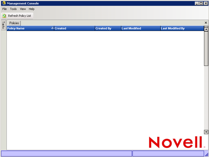 The Management Console launches with the list displayed. Policies you create are listed here so that you can open and modify them as necessary.