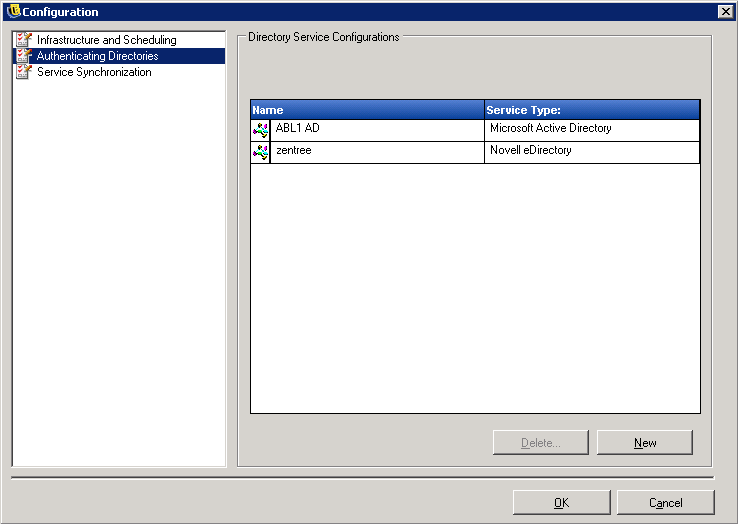 In the list, select the configuration you want to delete, then click to launch the Delete Directory Services Configuration Wizard.