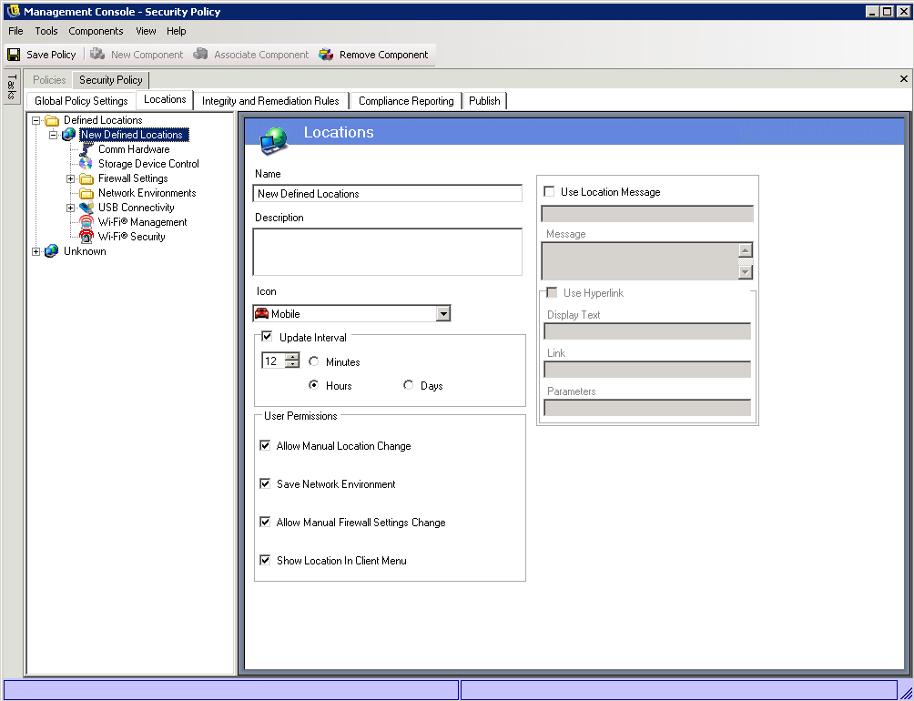 Multiple defined locations (beyond simple Work and Unknown locations) can be defined in the policy to provide users with varying security permissions when they connect outside the enterprise firewall.