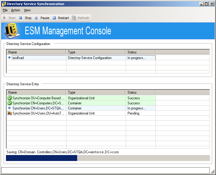 If you selected containers to synchronize, the Management Console begins the synchronization. You can double-click
