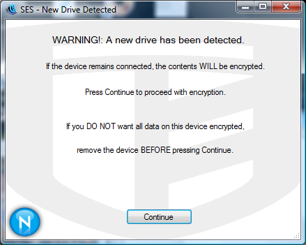 When you insert a removable storage device, the Security Client prompts, asking if you want the drive encrypted, or if you prefer to remove it and not encrypt all files.