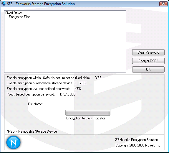 For example, assume that you are working on encrypted files at work. You want to take the files home to work on them, but your home computer does not have the Security Client installed. You copy the files to the Password Encrypted Files folder on your USB thumb drive, take the files home, then access them by using the ZENworks File Decryption utility you got from your administrator.