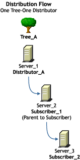 Note the following from the illustration concerning the use of multiple Distributors and parent Subscribers in sending Distributions: