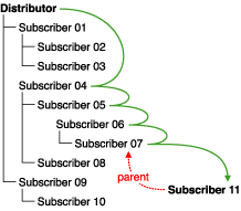 Parent Subscribers: A parent Subscriber is used as a proxy for the Distributor to pass on Distributions to other Subscribers.