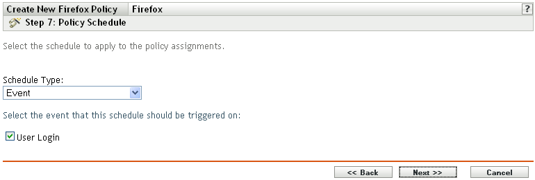 Click to create the policy as configured according to the settings on the Summary page. If you click , the Firefox policy is created but it does not have devices assigned or a schedule specified. At some point in the future, you need to configure additional options for the policy by continuing with Section 17.4, Assigning Policies.