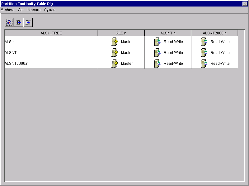 También podría ver iconos que representan réplicas ilegibles. Esto no significa necesariamente que los servidores no puedan comunicarse. Podría indicar simplemente que el cliente no puede establecer contacto con el servidor para hallar la información.