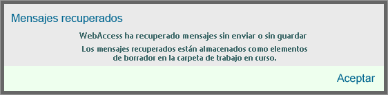 Si inicia WebAccess y solo se recupera un mensaje guardado automáticamente, aparece el siguiente mensaje:
