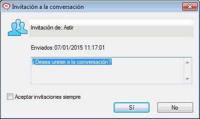 Todos los usuarios invitados a la conversación reciben este recuadro de mensaje: