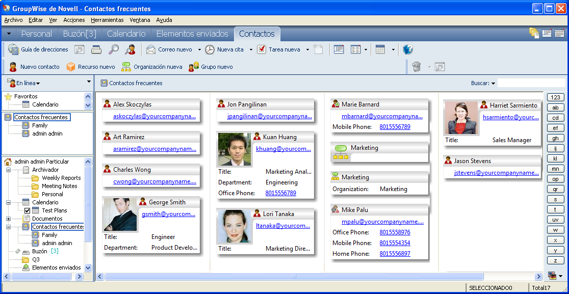 Figura 6-1 Ventana principal con una carpeta Contactos