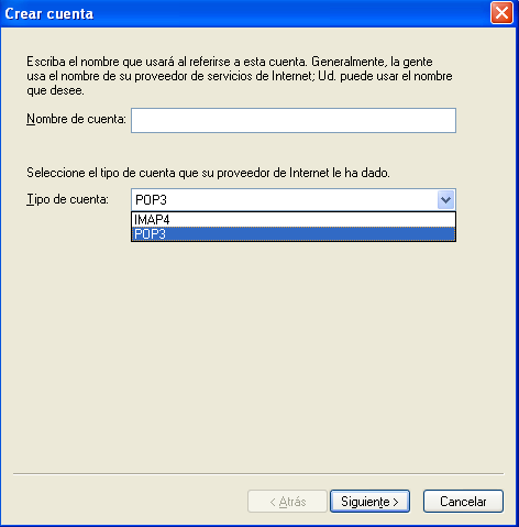 Escriba un nombre para la cuenta y seleccione el tipo de cuenta que desee.