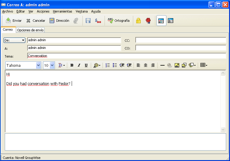 Al componer un mensaje en GroupWise, tiene la posibilidad de utilizar GroupWise, OpenOffice.org o Microsoft Word como editor para crear el mensaje. Si decide utilizar OpenOffice.org o Word como editor, la funcionalidad y el formato de la aplicación estarán disponibles en la ventana de composición de GroupWise.