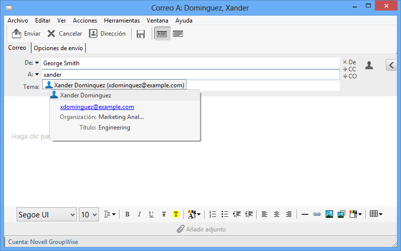 NOTA:no se pueden importar direcciones a la guía de direcciones de GroupWise.