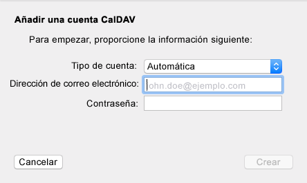 En la aplicación Mac Calendar, seleccione Calendar > Add Account (Calendario > Añadir cuenta).