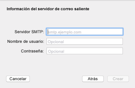 Especifique el servidor SMTP, el nombre de usuario y la contraseña.