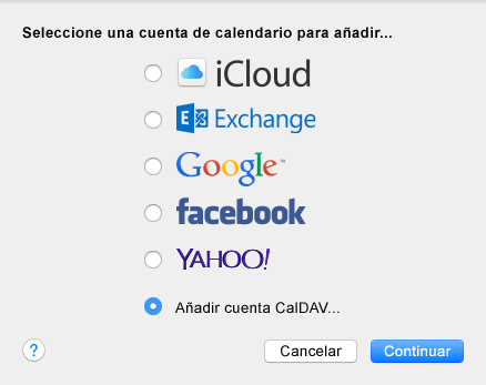 Seleccione Añadir cuenta CalDAV.