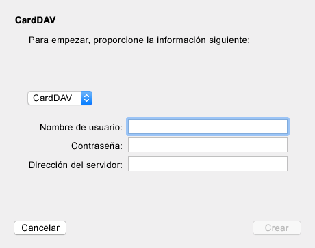En la aplicación Mac Contacts, seleccione Contactos > Añadir cuenta.