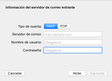 Especifique el servidor IMAP. El nombre de usuario y la contraseña deberían estar ya presentes.