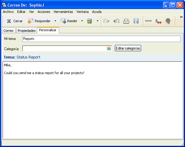 La ventana Propiedades le permite verificar el estado de cualquier elemento que haya enviado. Por ejemplo, es posible ver cuándo se entregó un elemento y cuándo el destinatario lo abrió o lo suprimió. Si un destinatario aceptó o rechazó una cita e incluyó un comentario, verá el comentario en la ventana Propiedades. También verá si un destinatario marcó una tarea como finalizada.
