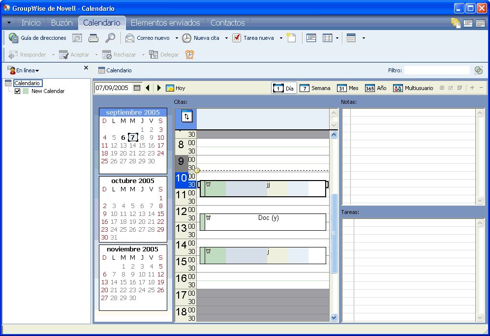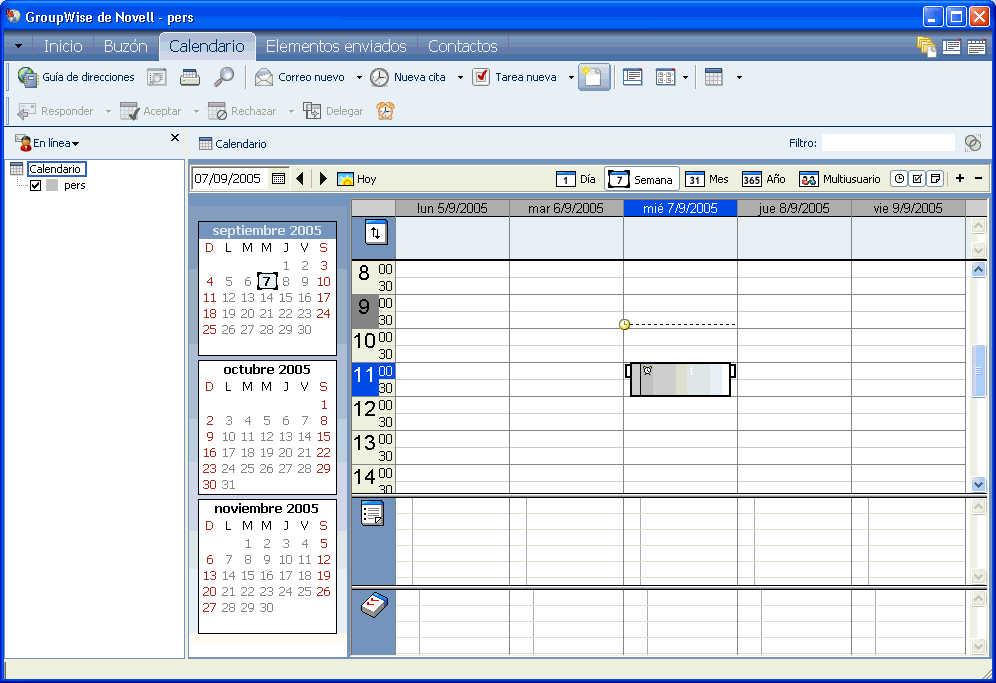 Figure 6-1 Vista del calendario con la vista Semana