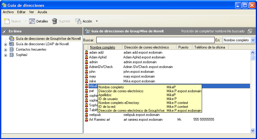 Figure 8-5 Guía de direcciones con información acerca de un usuario