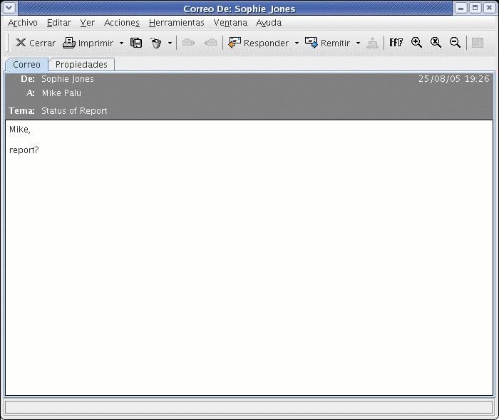Figure 3-2 Correo electrónico procedente de un usuario de GroupWise