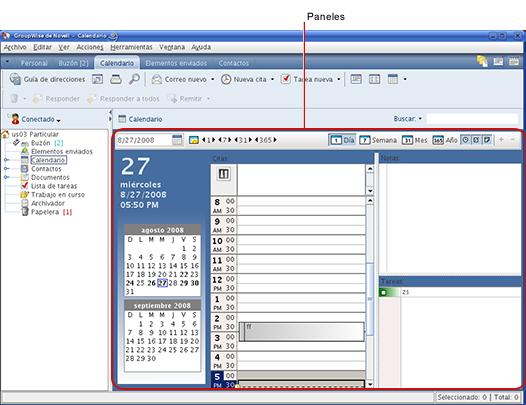 Figura 2-6 Paneles de GroupWise