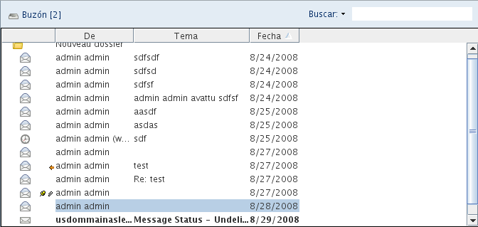 Las listas de elementos se organizan en columnas, lo que permite mostrar los elementos en el orden que resulte más conveniente. Es posible arrastrar una columna a una posición distinta en los encabezados de columnas. También se puede cambiar su tamaño arrastrando el borde del encabezado. Es posible ordenar por columnas y añadir otras nuevas. Para obtener instrucciones completas sobre la personalización de las listas de elementos, consulte la Sección 2.3.4, Gestión de listas de elementos en carpetas y la Sección 2.3.5, Personalización de ajustes de visualización de carpetas.
