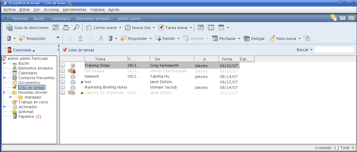 NOTA:La carpeta Lista de tareas sustituye a la carpeta Lista de verificación de las versiones anteriores de GroupWise. Para acceder a una comparación entre la carpeta Lista de tareas y la carpeta Lista de verificación, consulte Carpeta Lista de tareas.