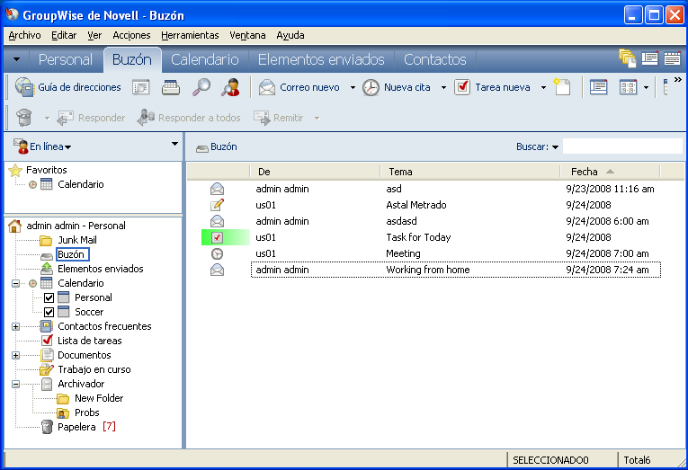 GroupWise almacena todos los mensajes de correo, las citas, y el resto de elementos que reciba en su buzón.