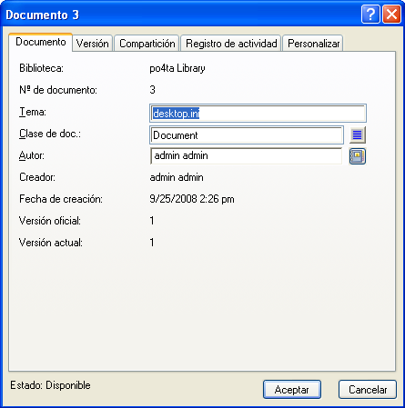 Puede usar la pestaña Documento de Propiedades para ver la información de versión de un documento, las estadísticas del mismo y controlar su compartimiento con otros usuarios.