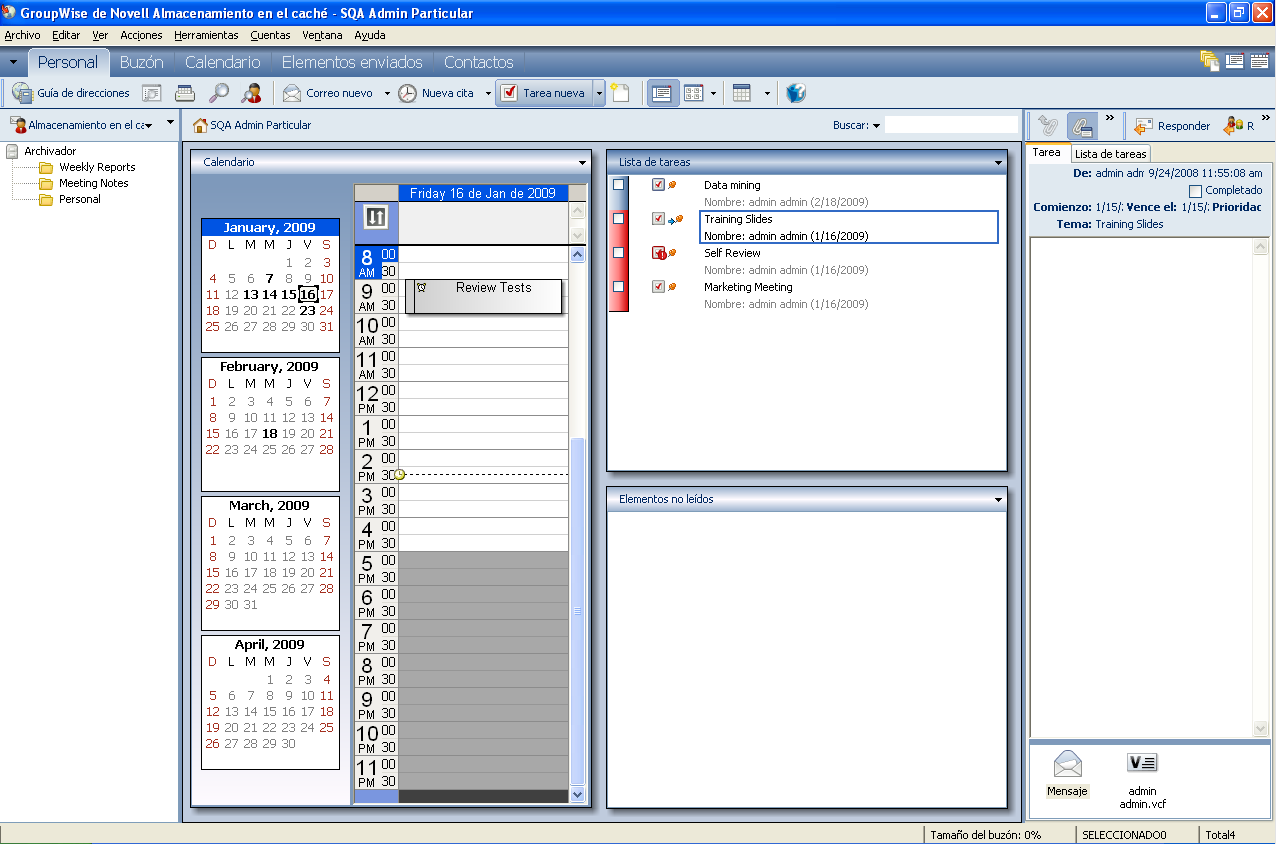 Los cambios realizados en los calendarios compartidos se actualizan siempre que se conecta al sistema principal de GroupWise.