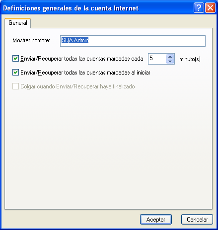 Si el menú Cuentas no está disponible en el buzón en línea, el administrador del sistema ha especificado que las cuentas POP3 e IMAP4 no se pueden usar en el modo En línea.