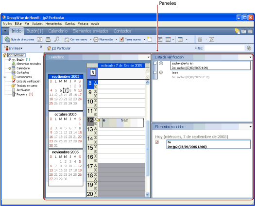 Figura 2-8 Paneles de GroupWise