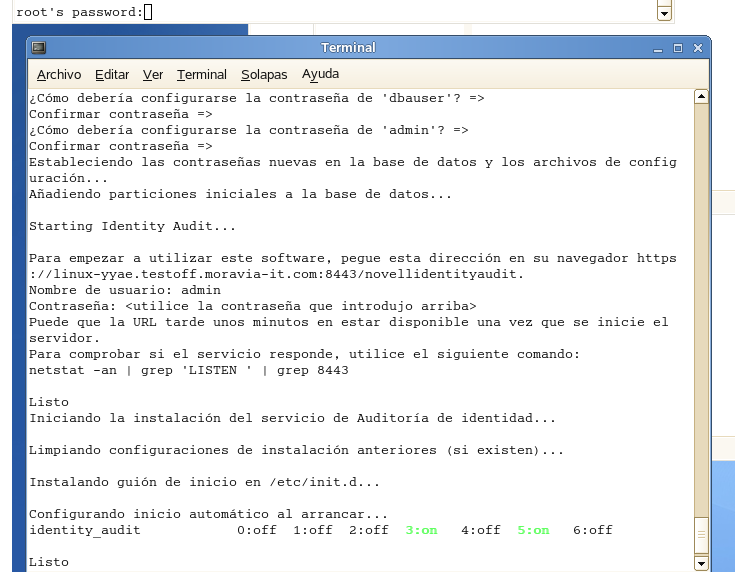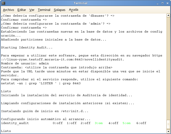Identity Audit está configurado para iniciarse con los niveles del tiempo de ejecución 3 y 5 (modo multiusuario con reinicio en la consola o con el modo X-Windows).