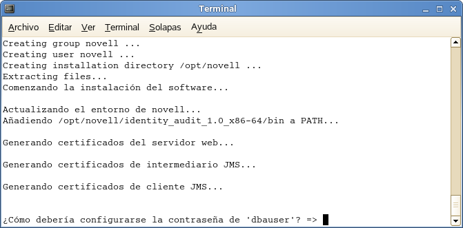 Se crearán el usuario de Novell y el grupo de Novell, en caso de que aún no existan.