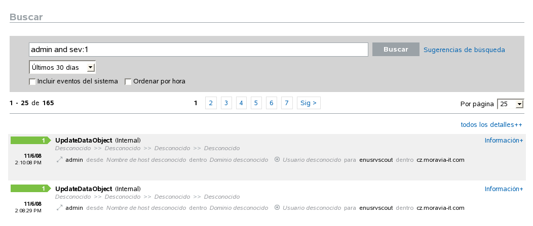 Identity Audit está configurado para ejecutar una búsqueda por defecto para eventos que no pertenecen al sistema con una gravedad comprendida entre 3 y 5 la primera vez que el usuario hace clic en el enlace . De lo contrario, por defecto, volverá al último término de búsqueda que el usuario haya introducido.