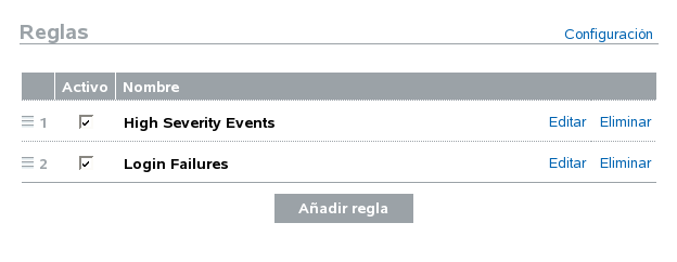 Debido a que las reglas evalúan los eventos en orden hasta que se produce una coincidencia, Novell recomienda que ordene las reglas según corresponda. Las reglas cuya definición sea más precisa y las reglas más importantes deberían colocarse al principio de la lista. Cuando hay más de una regla, se pueden ordenar utilizando la opción de arrastrar y soltar.