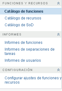En la parte izquierda de la pestaña se muestra un menú de las acciones que puede llevar a cabo. Las acciones se muestran por categoría ( > y ):