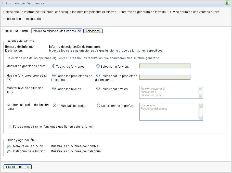 Figura 19-2 Ejemplo de informe de asignación de funciones