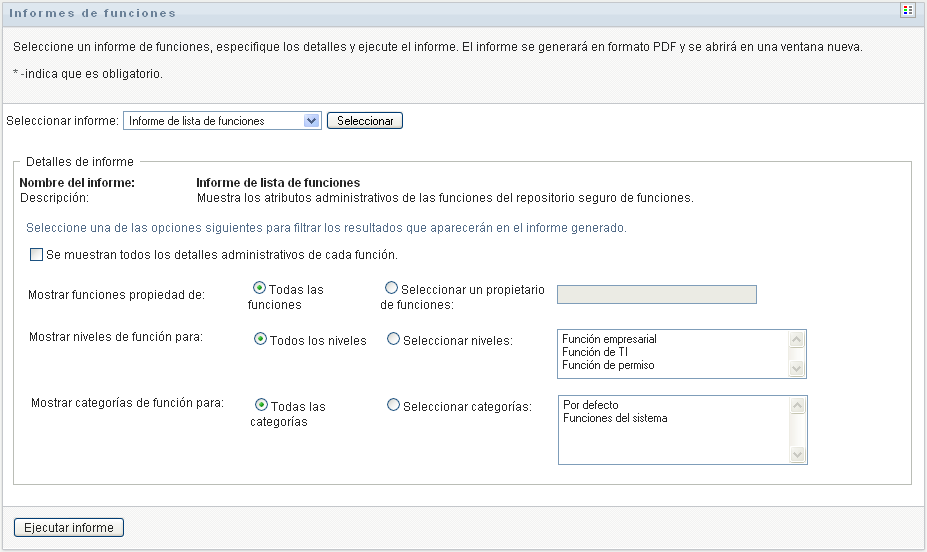 Haga clic en para filtrar el informe de modo que sólo incluya las funciones asignadas.