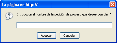 Escriba el nombre que desee utilizar para identificar la petición de proceso guardada y haga clic en .