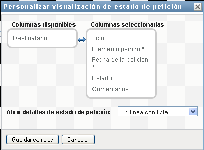 Para personalizar la presentación de las columnas en la lista de estado de peticiones: