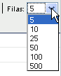 Haga clic en la lista desplegable y seleccione el número de filas que desea mostrar en cada página: