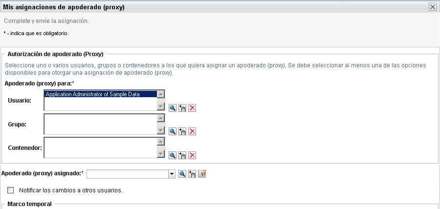 Si es administrador de provisión, seleccione uno o varios usuarios, grupos y contenedores para los que desee definir un apoderado.