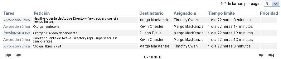 Elija una longitud de página de 5, 10 o 25 tareas por página.