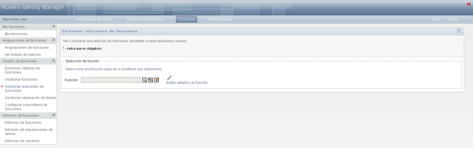 Para encontrar la función para la que desee añadir o eliminar una relación, utilice la herramienta o tal como se describe en la Sección 1.4.4, Acciones comunes de los usuarios.