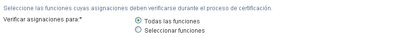Debe seleccionar como mínimo una función para iniciar un proceso de certificación. Sin embargo, no es necesario seleccionar ninguna para guardar la petición.
